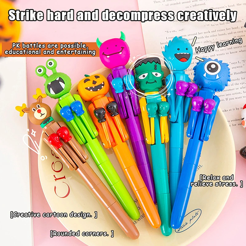 Funny Boxing Pen Vampire Pumpkin Monster Snowman Santa Claus Ballpoint Pen Decompression Toy Tricky Toys Stationery Supplies